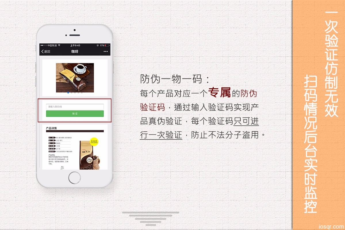具有产品防伪验证功能和营销功能的二维码。通常打印、印刷、喷绘在产品包装上或展示在产品宣传册上使用。您可以通过“扫一扫”体验实际效果。